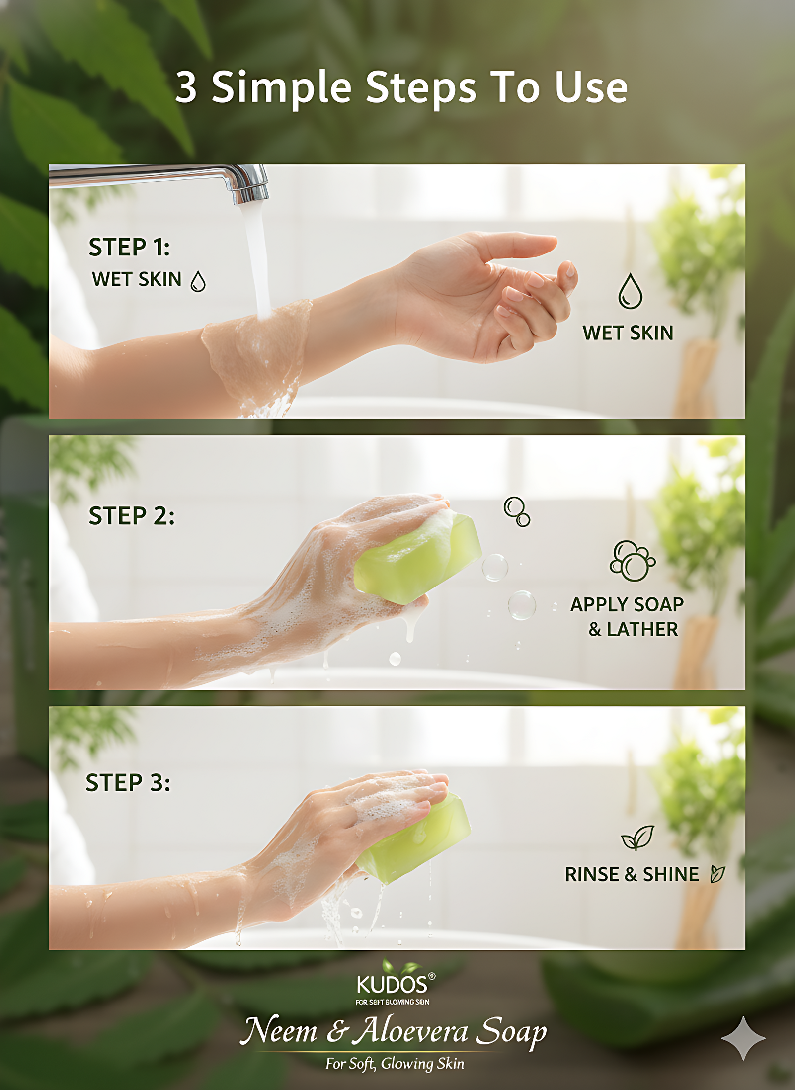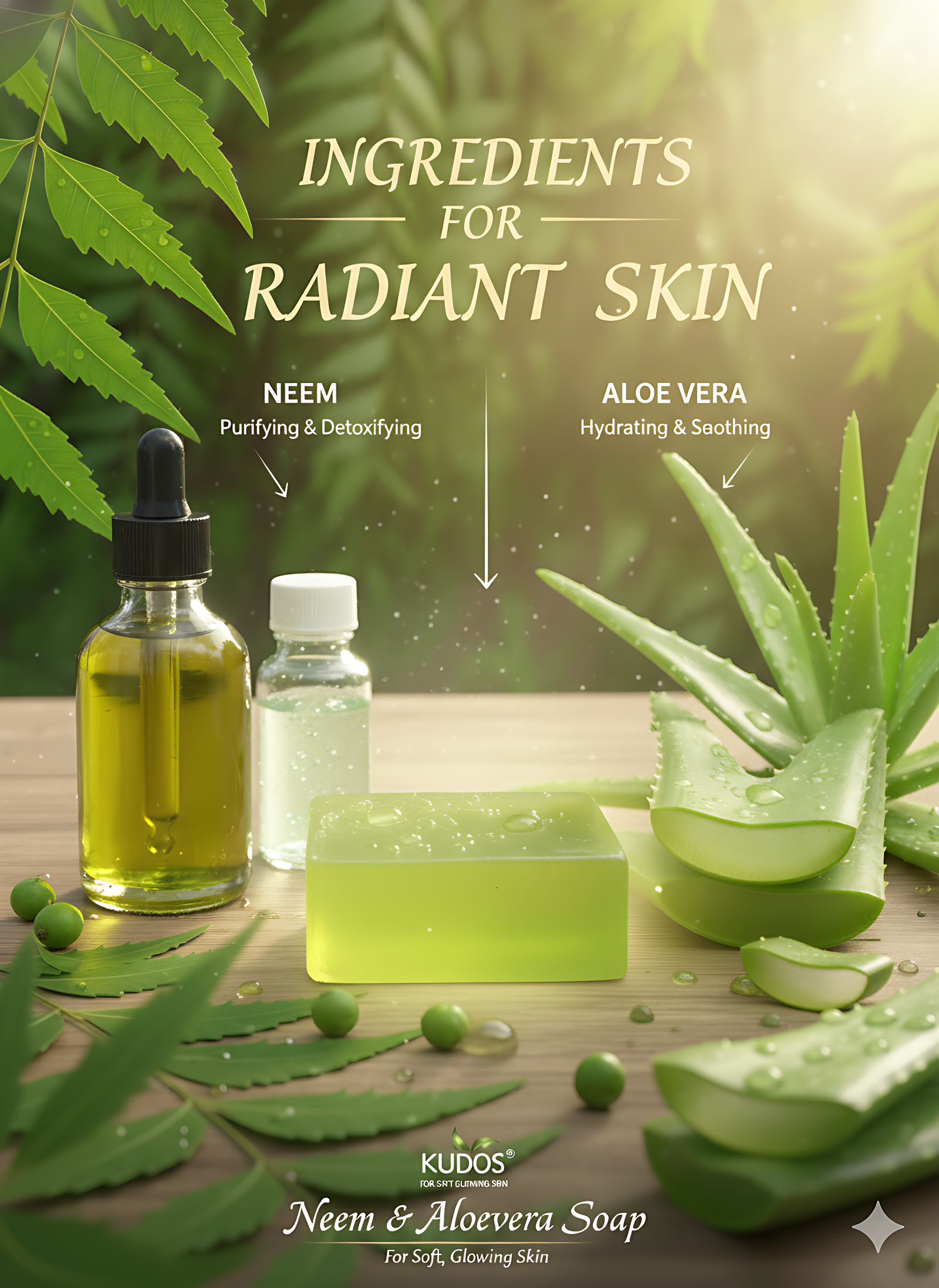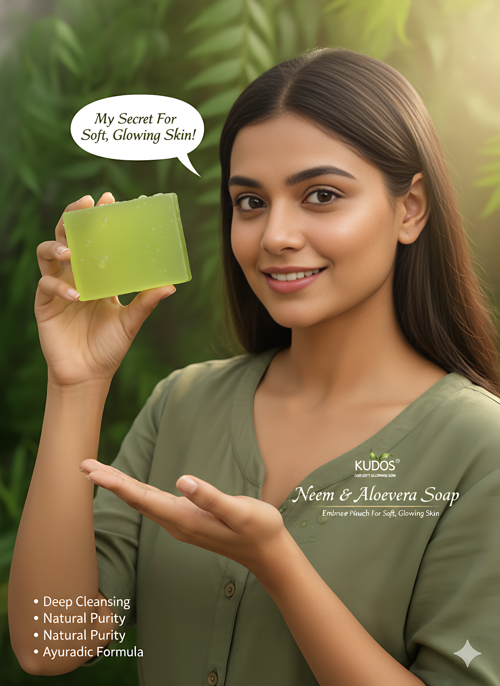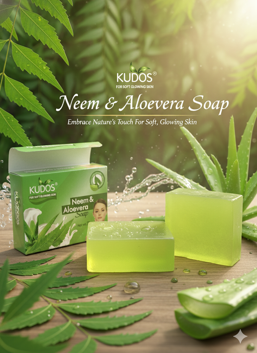 Experience nature’s touch in every wash — with Kudos Neem & Aloevera Soap! 🌱💧